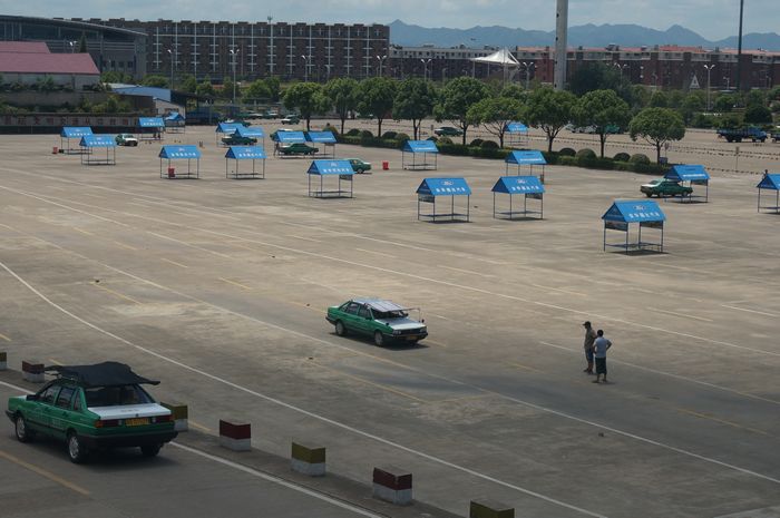 图3:该校驾驶训练场一隅及教练车上的特色“遮阳帽”