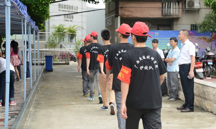 上午8时许,新生与家长陆续来到学校。学院军乐队演奏嘹亮欢快的乐曲,电子屏幕上滚动播出的“热烈欢迎2013届新同学来到广西交通技师学院大家庭!”、“白云蓝天,绿树彩旗,我们在这里等你!”等欢迎词,让新生感受到我院的热情与温馨。安保人员各司其职,“你好!请往这边走,看到那些橘黄色的遮阳棚了吗?沿着那些彩旗一直走……”由学生志愿者组成的“校园保卫队”认真指挥车辆停放,充分保证校园交通畅通。