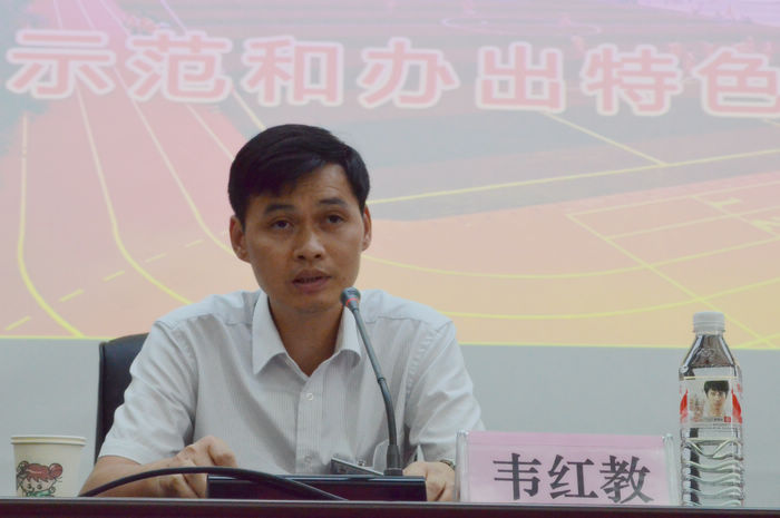 韦红教院长在讲话中指出:“得到批复的示范校建设方案和任务书凝聚了全院教职工的汗水,汇聚了全院师生的智慧和力量,这既是我院建设管理发展的顶层设计,也是一本操作性、实用性很强的指导我院今后一段时期工作的说明书。要完成这一建设任务,内容多、规模大、投入资金多、涉及范围广,任务艰巨而繁重。”为此,他提出了“一个奋斗目标,两项建设内容,五大改革重点,六条保障措施”的工作思路。一个奋斗目标即通过两年的建设,确保国家中等职业教育改革发展示范学校建设项目顺利通过国家评估验收并使我院真正成为国家中等职业教育改革创新的示范、提高质量的示范、特色办学的示范。两项建设内容即重点专业建设及特色项目建设。五大改革重点即改革培养模式、改革教学模式、改革办学模式、改革教学内容、改革评价模式。六条保障即要强化组织保障、强化制度保障、强化师资保障、强化过程管理、强化服务保障、强化经费保障。