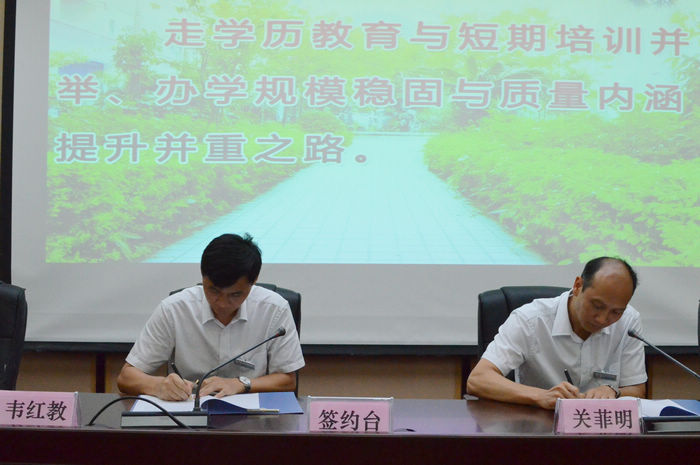 7月3日下午,我院国家中等职业教育改革发展示范学校建设启动仪式在信息中心楼四楼会议室隆重举行,学院领导部署安排国家示范校建设工作,并与各项目负责人签订责任书。