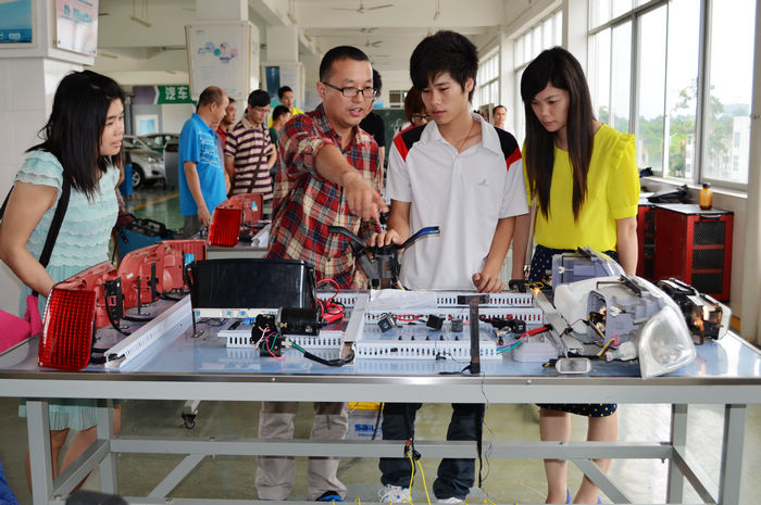 图二: 柳州市技工学校的教师与我院正在上课学生交流