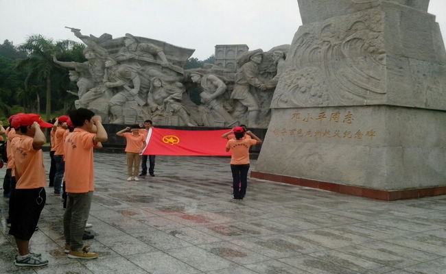 图一:团干们在邓小平纪念碑前重温入团宣誓