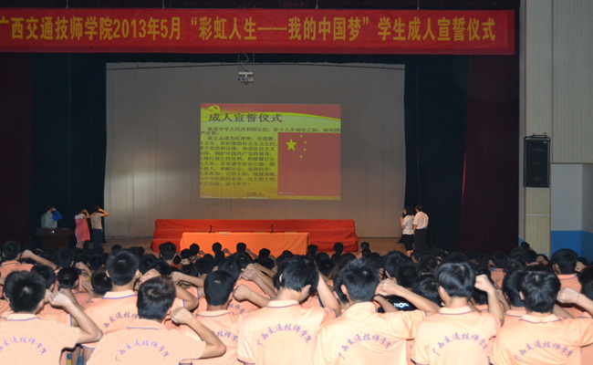 5月29日下午,2013年“彩虹人生——我的中国梦”学生成人宣誓仪式在学院礼堂举行,近千名学生参加了该仪式。