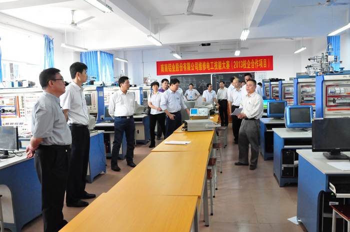 我院考察团一行参观了广西石化高级技工学校普车实训中心、数控实训中心、机械设备安装与维修中心、电力拖动综合实训室、机电一体化实训中心、维修电工实训室、综合实训大楼等实训场地以及该校的校史展览室。该校完善的教学设施设备和严谨的教学管理给我院考察团留下深刻印象。