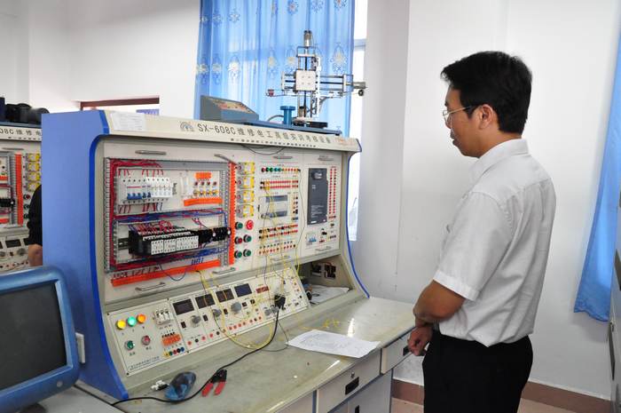 图五:我院考察团一行参观广西石化高级技工学校实训教室