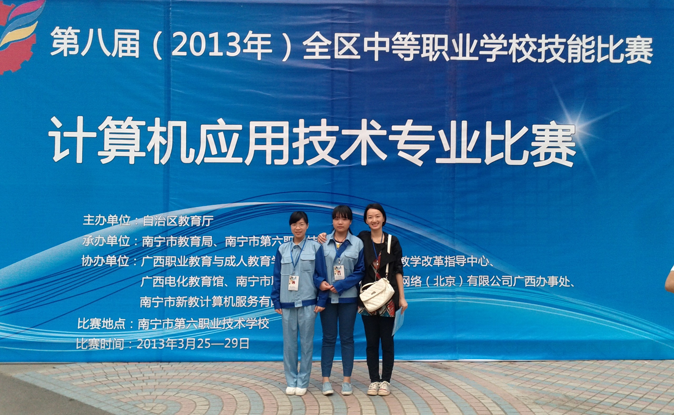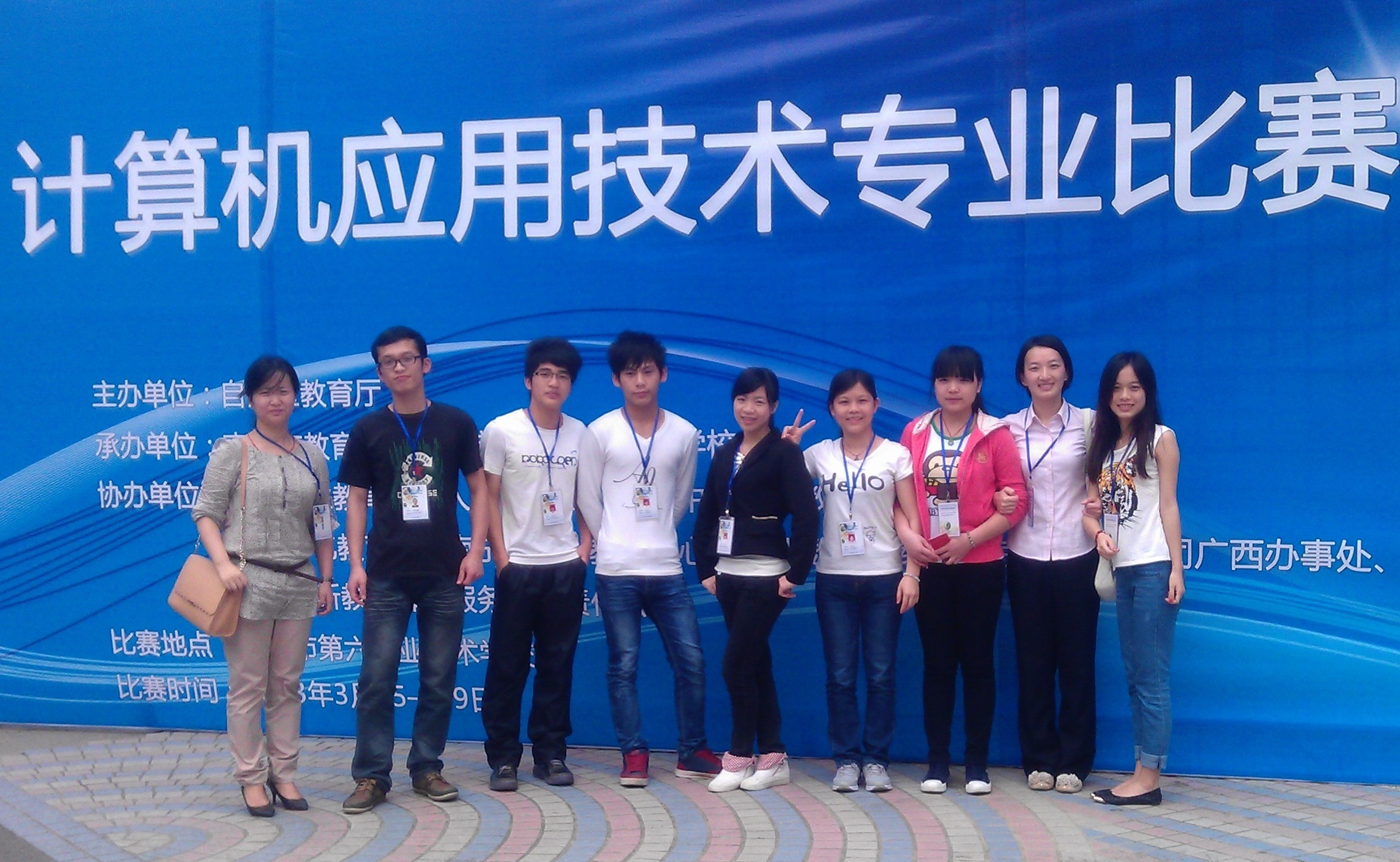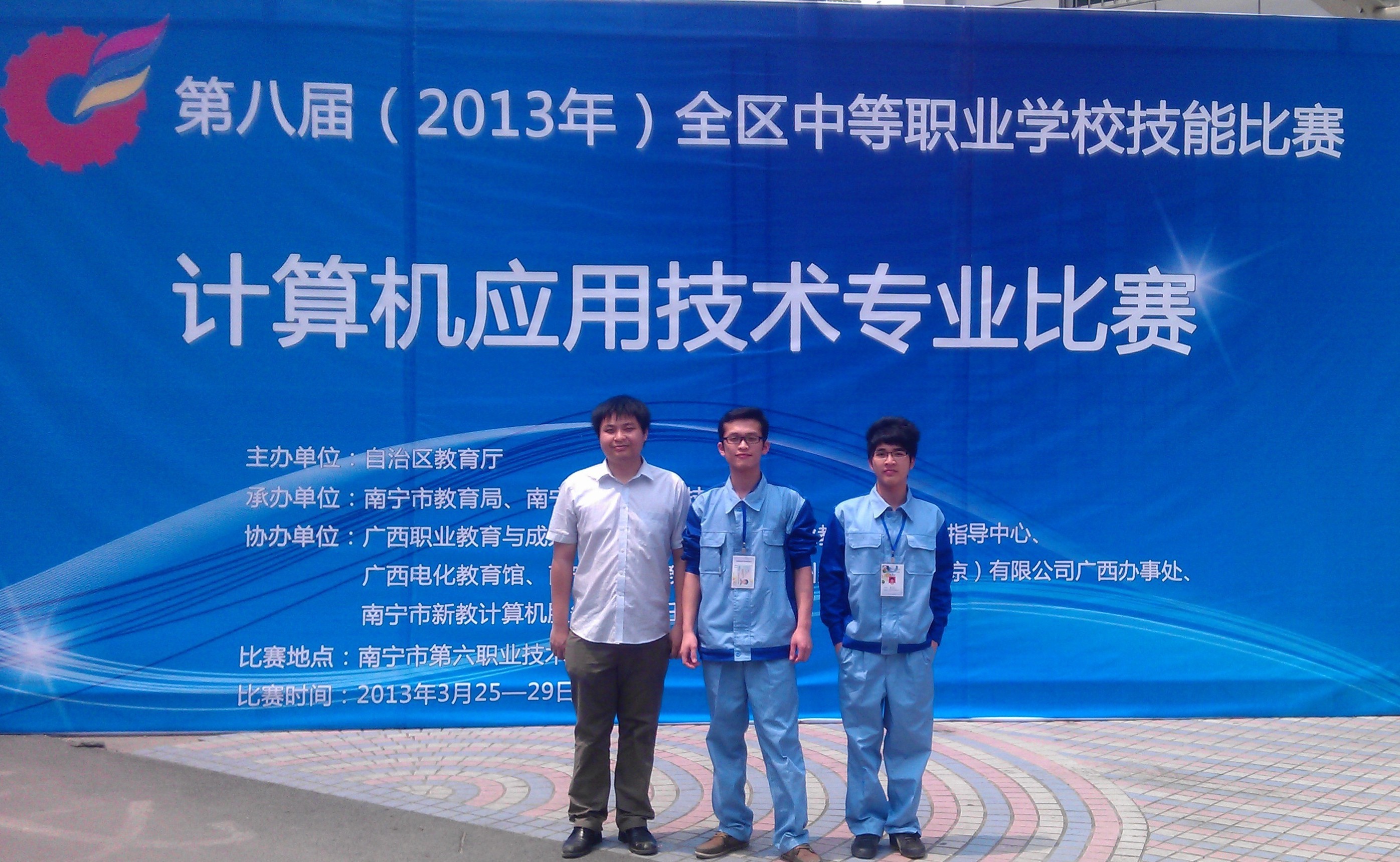 2013年3月26-28日,第八届(2013年)全区中等职业学校技能比赛计算机专业比赛在南宁举行,我院代表队与来自全区各地约2千多名选手同台竞技,最终载誉而归。