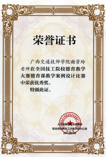 谢芳玲老师获德育课教学案例设计比赛项目优秀奖。