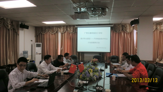 2013年3月13日下午,汽车工程系示范校重点专业建设——汽车钣金技术专业有关负责人,在学校办公楼二楼会议室对该专业建设进度进行汇总,并做了下一阶段的工作安排。会议主持人由韦军新副主任负责,参会人员有:冯培林、罗宗港、张俊华等八位汽车钣金专业教师。