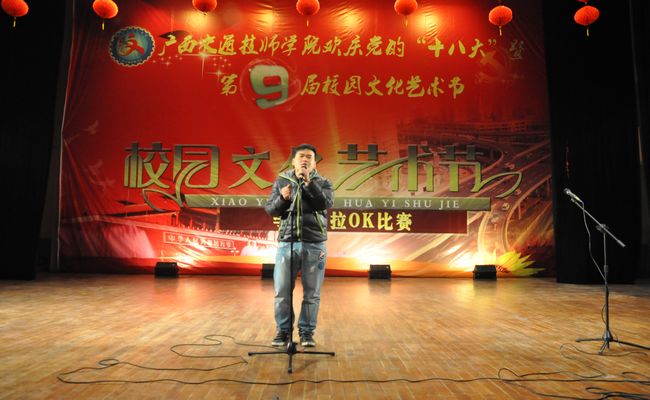 本次校园文化艺术节学生卡拉0K比赛共有120名同学参与,涉及在校班级64个。经过3个晚上的预赛,决出梁永超等16名同学进入决赛。决赛中一首首动听的歌曲将我们带入音乐的海洋,精彩层出不穷。最终,2010级汽车检测与维修(预备技师)1班梁永超同学的《背对背拥抱》和2011级工程计量班何天生同学的《北京 北京》荣获一等奖。