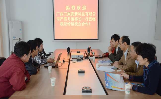 广西三原高新科技有限公司董事长严雪月一行到我院洽谈合作事宜