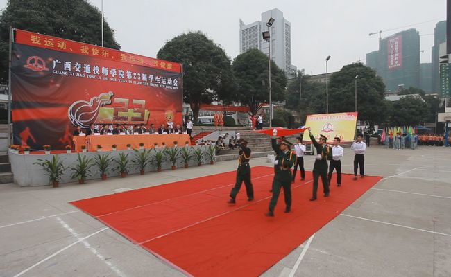 图13:11月15至16日,学院一年一度的学生运动会正式拉开帷幕,学生彩旗队和鲜花队率先登场