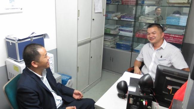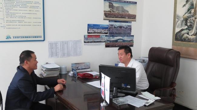 图3 梁振华副主任和北京现代玉林得利特约销售服务店售后服务副经理蒋家琨进行座谈