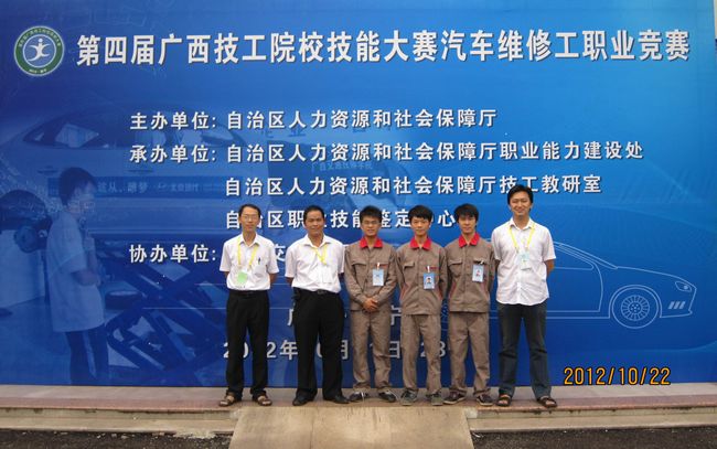10月21 -23日,第四届广西技工院校技能大赛汽车修理工技能竞赛在我院开赛,来自全区13所技工院校的37名参赛选手参加了汽车维修工职业技能竞赛。本次大赛在学院领导高度重视、相关部门积极配合、指导教师精心指导以及选手自身的拼搏下,我院参赛的汽车修理工项目分别获得前三名的佳绩。根据桂人社办发〔2012〕351号文件公布的成绩:其中我院选手冯光华荣获汽车修理工项目第一名(指导教师:李春、肖华炜),李飞丞荣获汽车修理工项目第二名(指导教师:李春、肖华炜),韦华昆荣获汽车修理工项目第三名(指导教师:李春、肖华炜)。