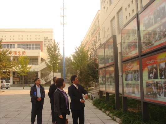 图一:钟修仁副院长一行在北京市商业学校负责人陪同下参观校园文化建设