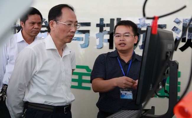 于祖毅副厅长在我院韦红教等领导的陪同下到大赛现场进行检查指导。他认真查看了大赛的现场情况和大赛的相关文件后,对比赛的组织安排给予了充分肯定。