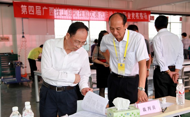 10月21日第四届全区技工院校技能大赛汽车维修、电子商务师项目比赛在我院隆重举行。10月22日上午,自治区人力资源和社会保障厅于祖毅副厅长一行莅临我院考察指导工作。自治区人力资源和社会保障厅职业能力建设处张远处长,自治区交通运输厅科教处张迎春副调研员,我院韦红教院长、罗华书记,陆天云、钟修仁、关菲明副院长,谭劲涛院长助理等院领导陪同考察。