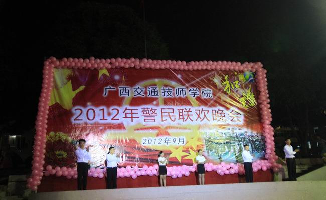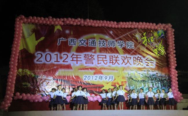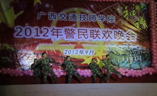 为了活跃2012级新生的校园生活,展示我院新生军训生活风貌,展现教官和我师生的风采,学院团委于9月7日晚在灯光球场举办了2012年警民联欢晚会。学院韦红教院长,武警二支队田振须副队长观看演出。