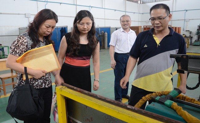 7月7日,交通运输节能减排项目管理中心副主任王艳,交通运输部科学研究院博士、副研究员谭君崇,中交水运规划设计院主任张亚敏,自治区交通运输厅科教处副调研员张迎春到我校进行调研,就我校申报的交通运输节能减排项目—绿色汽车维修技术应用展开调研工作。学校校长韦红教、副校长关菲明及相关部门领导陪同调研,校长韦红教进行学校节能减排工作汇报。调研组通过现场察看我校节能减排的设施设备,听取学校能源管理领导小组成员汽车工程系樊海林主任对我校节能减排项目的介绍后,对我校的节能减排工作表示肯定。