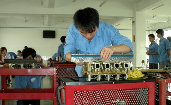 图三:学生正在进行发动机气缸盖平面度测量