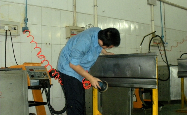 图四:学生正在进行钣件凹陷修复操作考试