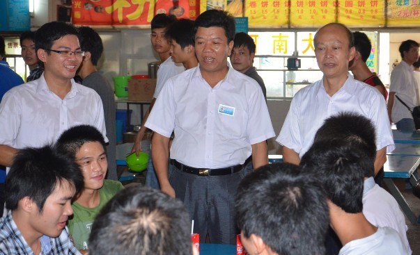 6月18日,学校拨出专款在校学生食堂为即将离校顶岗实习的1439名2013届毕业学生加菜饯行,罗华书记、钟修仁副校长等校领导到场慰问,学生工作处、后勤服务处领导以及各班主任参加饯行活动。