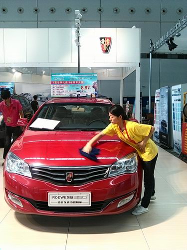图四:学生志愿者为荣威品牌 汽车清洁车身