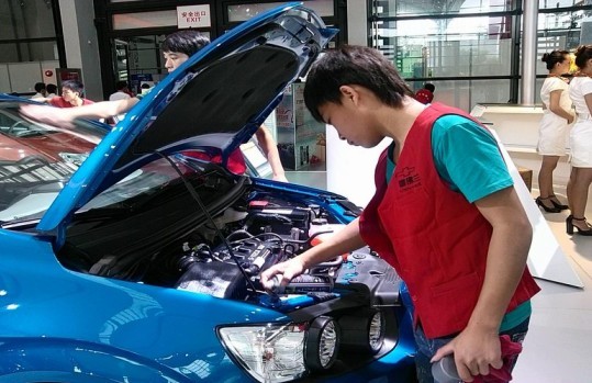 图二:学生志愿者为雪佛兰汽车品牌清洁发动机