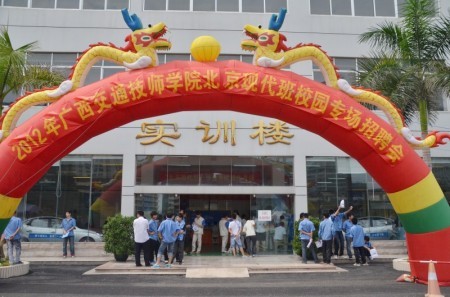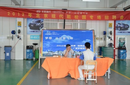 66日举行的2011级北京现代班专场招聘会上,北京现代班毕业生通过与企业对话,均顺利通过面试,找到了合适的企业,实现了双赢合作的目的。广西鑫广达长久汽车商贸有限公司、北京现代玉林得利特约销售服务店、北京现代桂林景顺特约销售服务店等54S店的人事主管、技术负责人等组成面试小组进行面试。招聘流程分招聘沟通会、面试学生自我介绍、企业招聘会特约店与学生的双选会三个环节进行。
