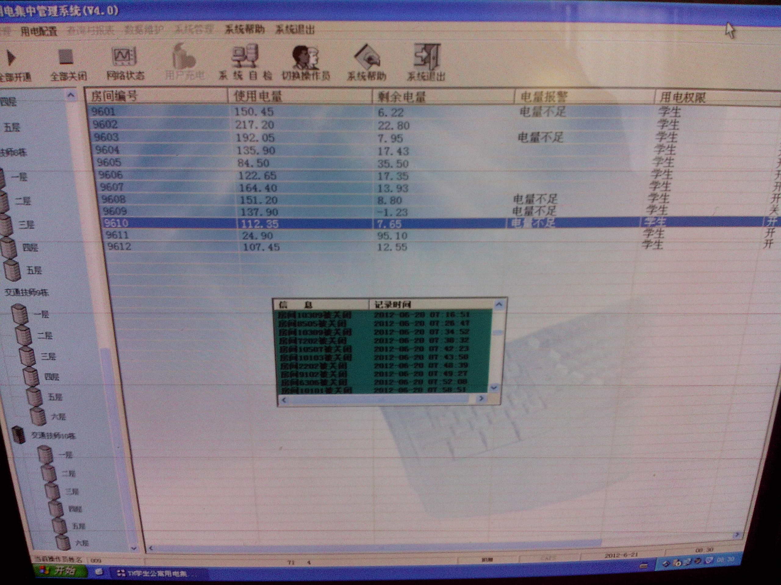 2011年一月起我校对全校所有学生宿舍实行智能用电系统管理。其主要功能: