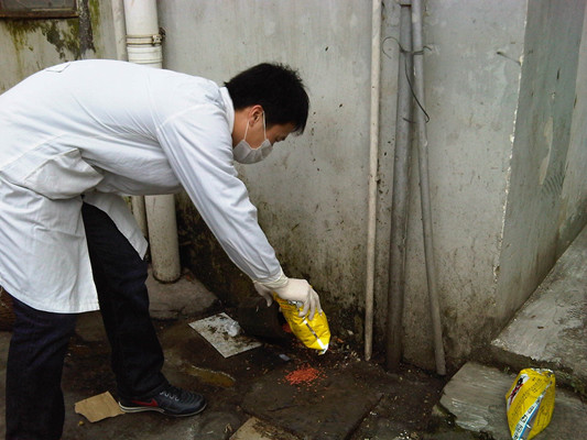 为了配合做好灭鼠防疫工作,学校后勤服务处在校园网和校区各角落张贴公告,加强宣传提示,确保有效灭鼠和师生人身安全。工作人员按照 “统一指挥、统一行动、统一毒饵、统一时间、统一办法”的要求,按照预定线路和预定地点,在校区房前屋后的边角、沟渠口、花圃边等处投放老鼠药、填堵老鼠洞,同时开展校园环境卫生大扫除。灭鼠防疫工作取得较好的成效。