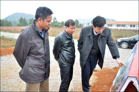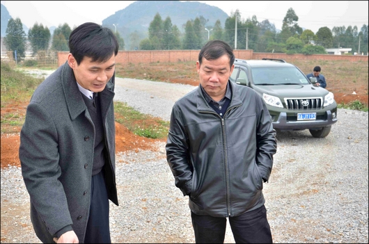 2012年2月29日,自治区交通运输厅副巡视员符茂清在学校校长韦红教、副校长陆天云、校长助理谭劲涛的陪同下视察学校伊岭新校区,对伊岭校区的规划和建设提出指导性意见。