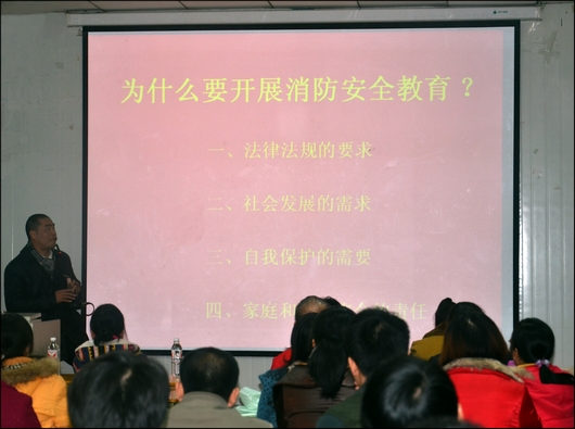 2012年3月2日下午,我校在学校学工楼302多媒体教室组织全体教职工开展消防安全知识培训。本次培训邀请广西区民安防火宣传中心梁珠孟教官开展专题讲座。梁教官用制作精美的课件以及丰富的消防知识案例,给我校全体教职工上了一堂幽默、生动、形象的消防安全知识培训课。
