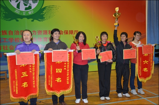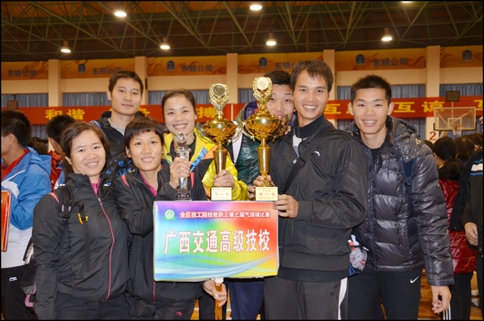 第七届全区技工院校教职工气排球比赛于2011年12月8-10日在南宁举行。此次气排球比赛共分青年男子甲组、青年女子甲组、青年男子乙组、青年女子乙组和中老年组共五个组别,全区28所技工院校共62个代表队参加此次比赛。我校派出男子甲级队、女子甲级队、中老年队参加比赛。经过三天的激烈角逐,我校男子甲级队获得第一名、女子甲级队获得第二名的好成绩,梁依丽荣获最佳扣球手称号。