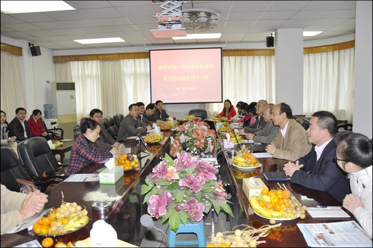 为推进校企合作有效运行,2011年12月8日,学校邀请广西交通投资集团有限公司(以下简称交投集团)人力资源部叶娟副总经理率下属8家运营公司领导一行18人来我校调研校企合作推进情况。交投集团来访领导在我校罗华书记、关菲明副校长的陪同下参观了我校的实训大楼,了解我校与北京现代、SPX等校企合作项目。随后,双方召开了座谈会,就校企合作办学相关事宜进行深入研讨。