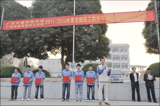 2011年11月28日,我校在灯光球场隆重举行“2011-2012年度全国华育奖助学金”发放仪式,学校副校长钟修仁给获奖的同学颁奖并在颁奖仪式上作重要讲话,学生工作处领导参加了本次仪式。