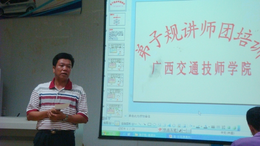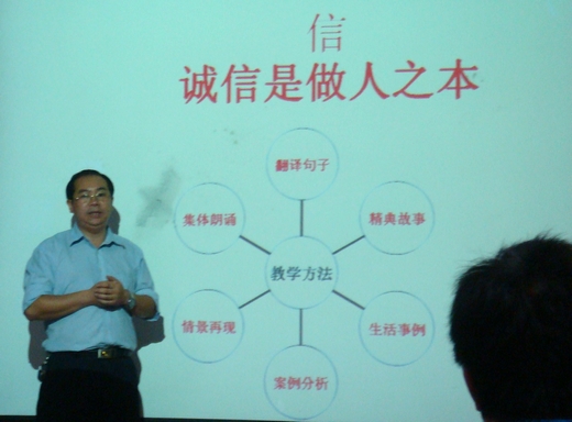 图一 钟修仁副校长在《弟子规》“讲师团”培训中的讲课