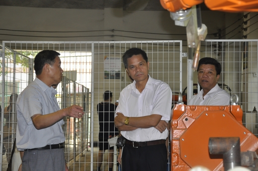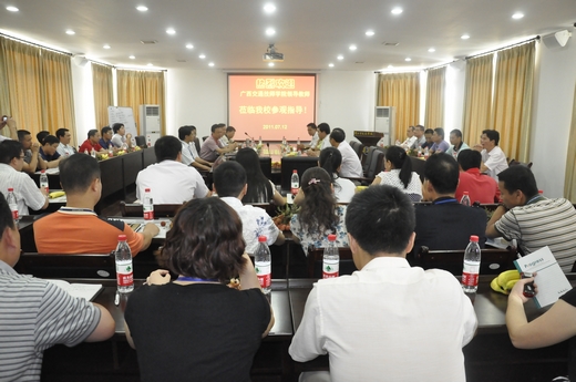 7月11日下午,在广西机械高级技工学校领导的陪同下,我校领导和中层干部参观了该校的数模中心(数控、模具实训基地)、汽修基地、智能机器人(焊接自动化)设备、电工电子中心等。在随后召开的座谈会上,广西机械高级技工学校校长何阳春介绍了学校的发展历程,表示在职业教育的广阔前景下,该校的优势在于校际合作、办学思路、校企合作方面所取得的成绩。作为广西第一所万人技工学校,该校已经开始规划建设新校区,以满足目前的办学规模。据悉,我校与广西机械高级技工学校曾多次开展互访活动,此次交流,为两校友谊的推进迈出了坚实的一步。